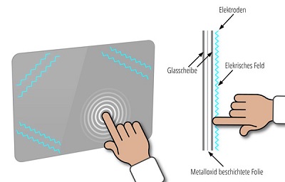 Die Multi-Touchsreen-Technologien gliedert man in die "Oberflächen-kapazitiven-Touchscreens" und die "Projiziert-kapazitiven-Touchscreens". Sie zeichnen sich grundsätzlich dadurch aus, dass sie mehrere Berührungspunkte simultan erfassen können.